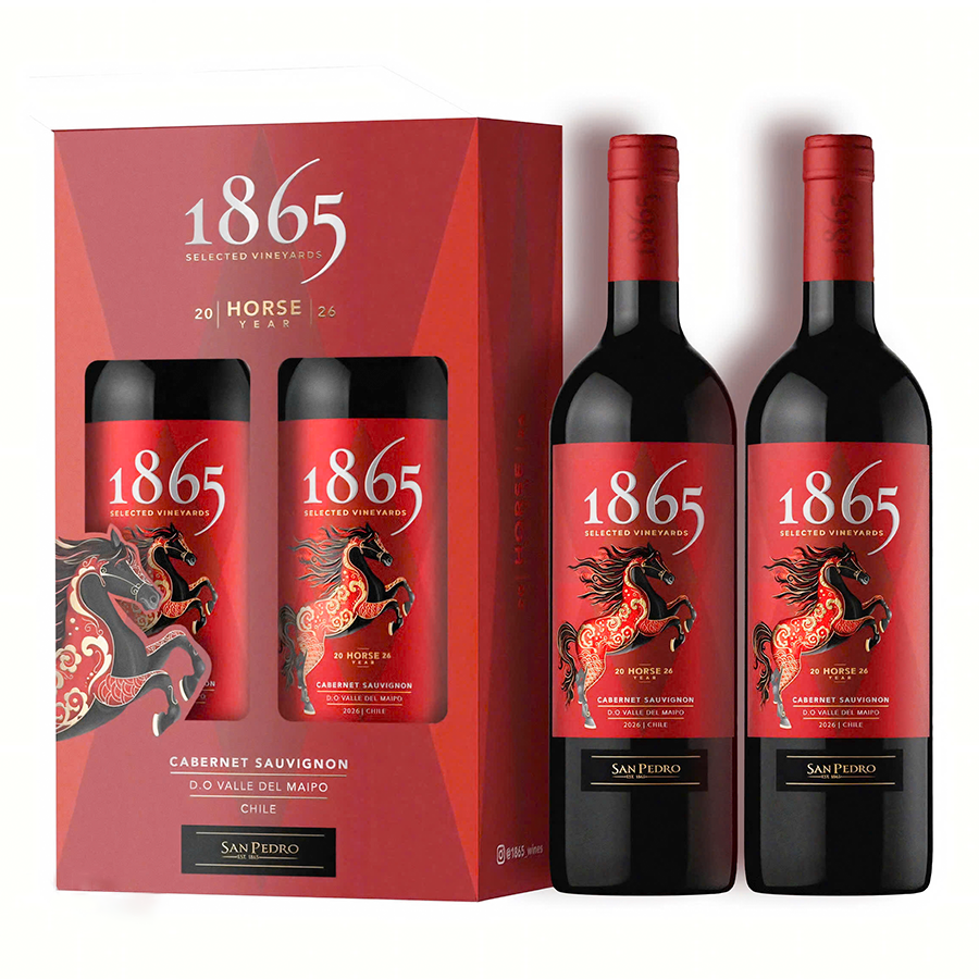 1865 Horse Year 2026 được tạo nên từ những trái nho Cabernet Sauvignon tuyển chọn tại thung lũng Maipo – vùng trồng nho danh tiếng của Chile, nơi có khí hậu mát mẻ và đất sỏi đá giúp trái nho phát triển hương vị đậm đặc.